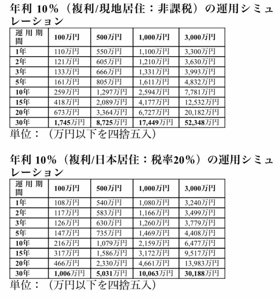 年利10%運用の現地居住者(非課税)