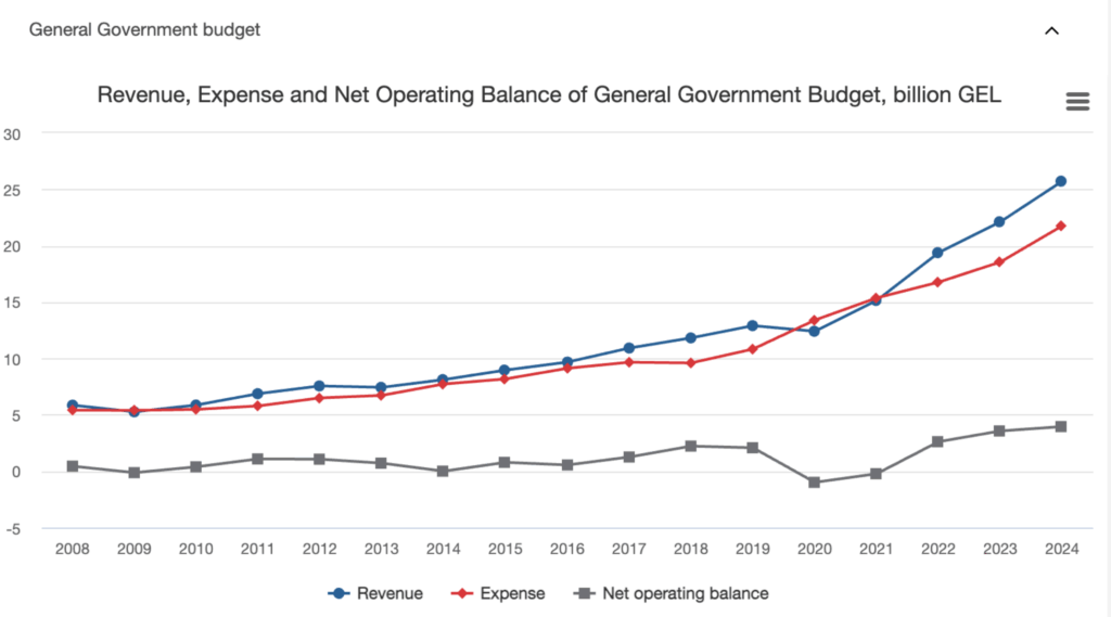 また、ジョージア政府の収支は2008年から着実に成長しています。