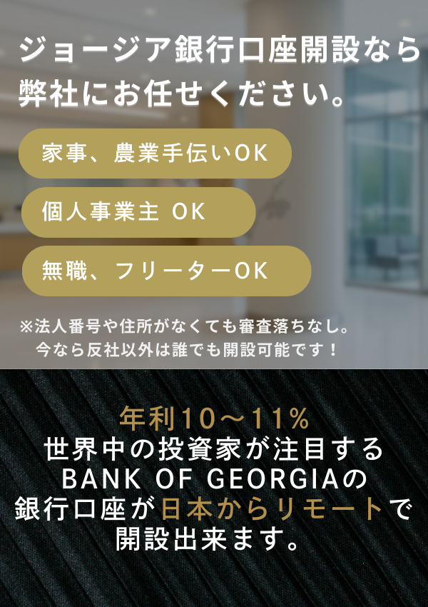• ジョージア銀行開設は、最初は不安な点も多いですが